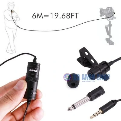 The BOYA BY‑M1 is a versatile omnidirectional lavalier lapel microphone that delivers clear, broadcast-quality audio via its long 6 m shielded cable. Compatible with smartphones, DSLRs, camcorders, audio recorders, and PCs, it features an omnidirectional condenser capsule, flat frequency response (65 Hz–18 kHz), and low handling noise. The mic includes a lapel clip, foam windscreen, 1/4” adapter, and an LR44 battery. With a switchable camera/smartphone mode and 2-year warranty, it's an ideal companion for vlogs, interviews, podcasts, and presentations.