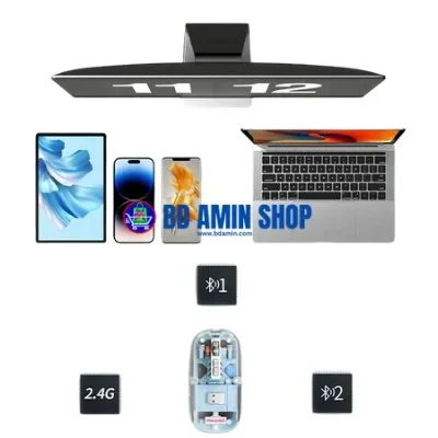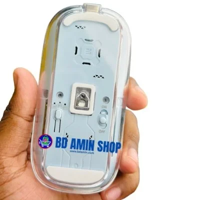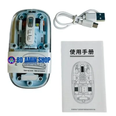 Elevate both your setup’s style and functionality with the GearUP WM30 Transparent Crystal 2.4G + Bluetooth Magnetic Wireless Mouse. Its eye-catching transparent crystal design reveals internal components, making it a striking accessory for any desk.
