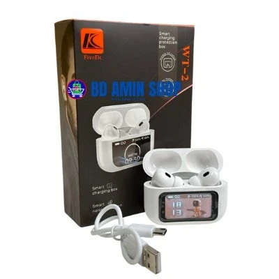 The WT‑2 is a feature-rich TWS headset offering Bluetooth 5.3, Active Noise Cancellation (ANC), and a vibrant full-colour LED touchscreen case for real-time battery and connectivity status. Comfortable silicone ear pads, waterproof build, and voice assistant support (Alexa/Siri) make it ideal for sports, travel, gaming, and office use. With up to 10 m wireless range, dual drivers for clear stereo sound, Type‑C charging, and a 7‑day replacement warranty, it delivers a premium experience under ৳2,000.